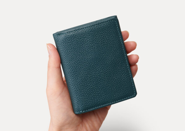 ポケットにもすっぽり収まるコンパクトな三つ折り財布。