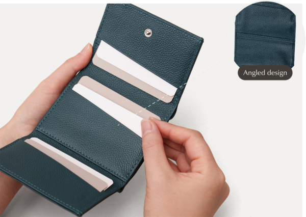 カードポケットは、スムーズに取り出せるようあえてカードが見える幅を広く設計しています。