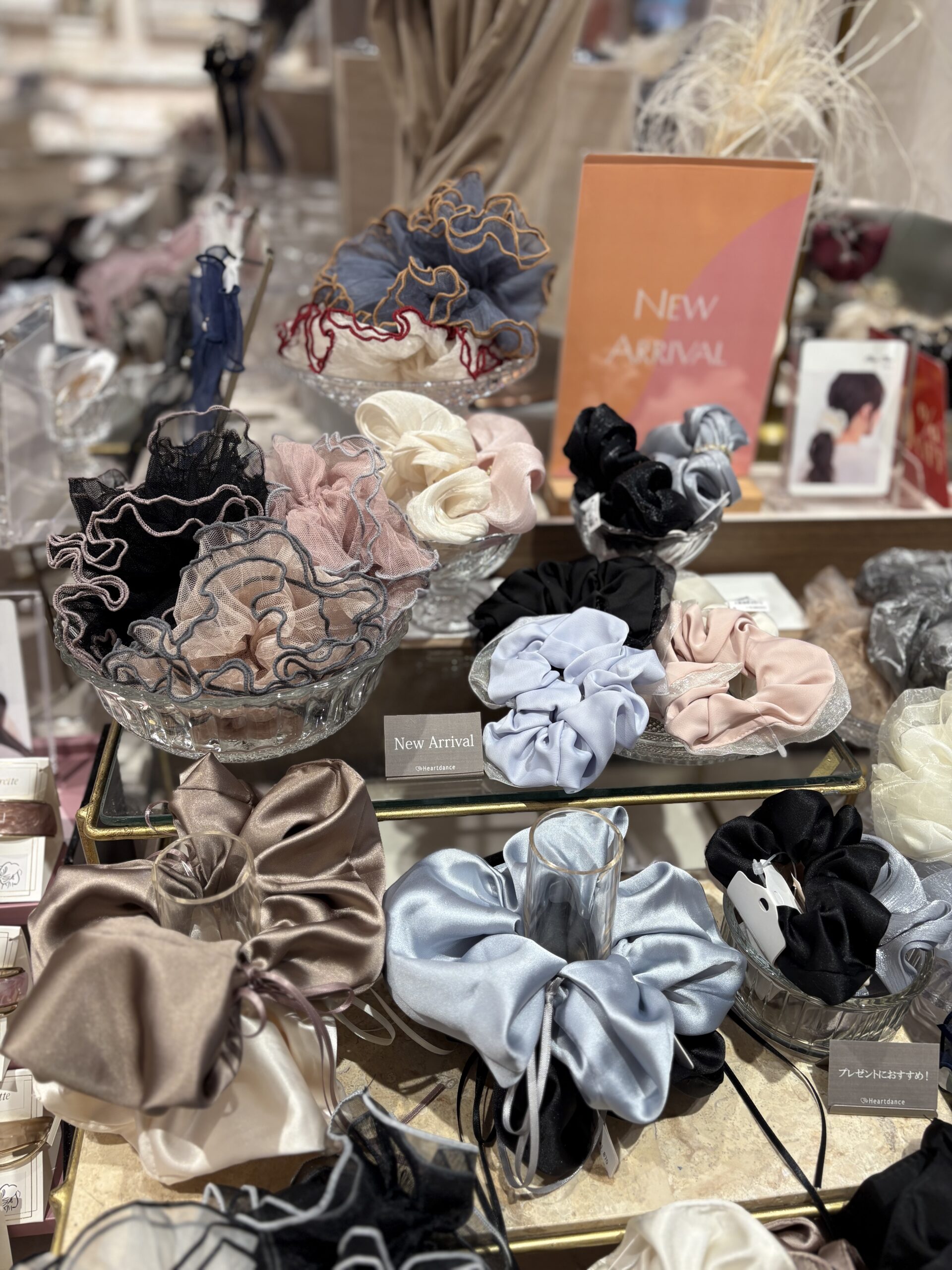 2026.1.27 UP ハートダンス アクセサリー 【NEW】シュシュ Heartdanceディアモール大阪店です! 新作のシュシュが続々入荷中です✨✨ 今から春まで使えるカラーやデザインがいっぱい🫣 オーガンジーでふわふわしたデザイン🫧や サテンリボンがバレエコア🎀🩰感があって とってもおしゃれですね♡ 是非、種類豊富にご用意しております🙋♀️ 実際店頭に見にいらして下さいませ! 皆様のお越しをお待ちしております✨
