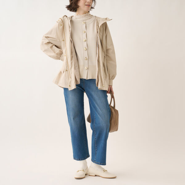 ・ドライタッチな風合いが特徴の素材を使用し、春先まで使えるアイテム