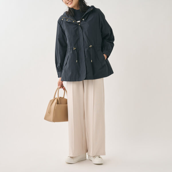 ・ヒップの隠れる丈感でウエスト高めの位置にドロストをつけてスタイルアップも