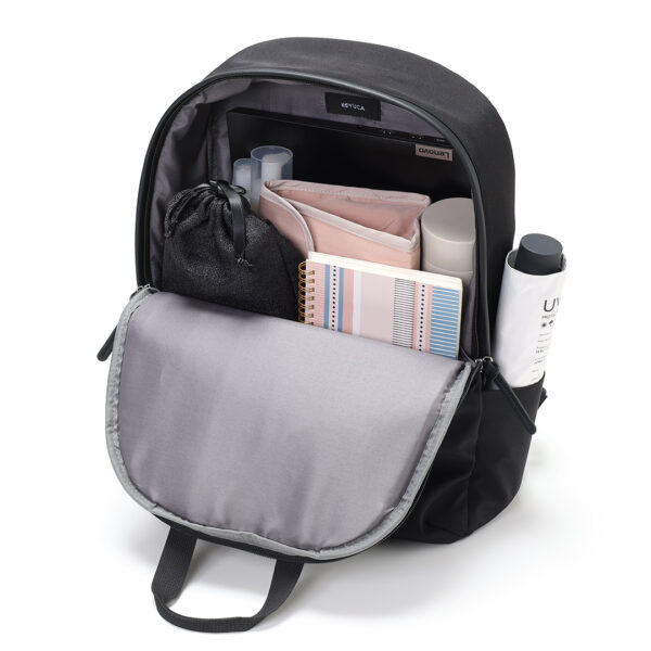 ・メインの荷室にはノートPCやタブレットも収納可能なクッション付きポケットとオープンポケット2つを装備。