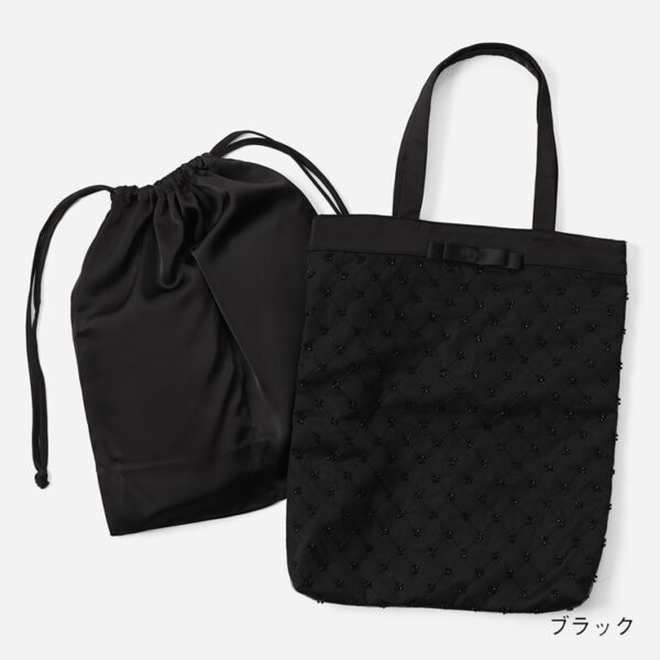 本体と同じサテン生地のシューズ袋付き。