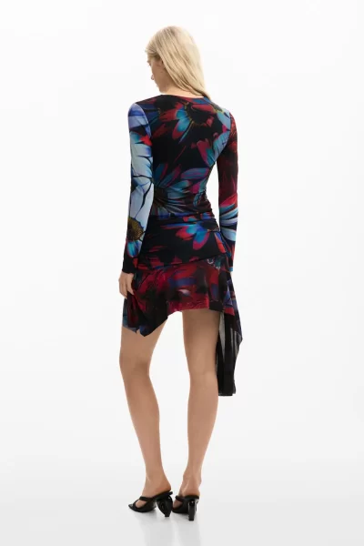 ポリエステル、コットン、エラスタン混紡のジャージー生地を使用した、ダークトーンの抽象プリントのワンピース♡