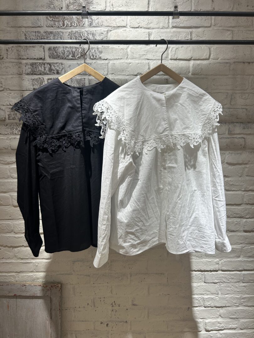 大きな襟にレースが施された着回し間違いなしのブラウスです𓂃𓈒𓏸