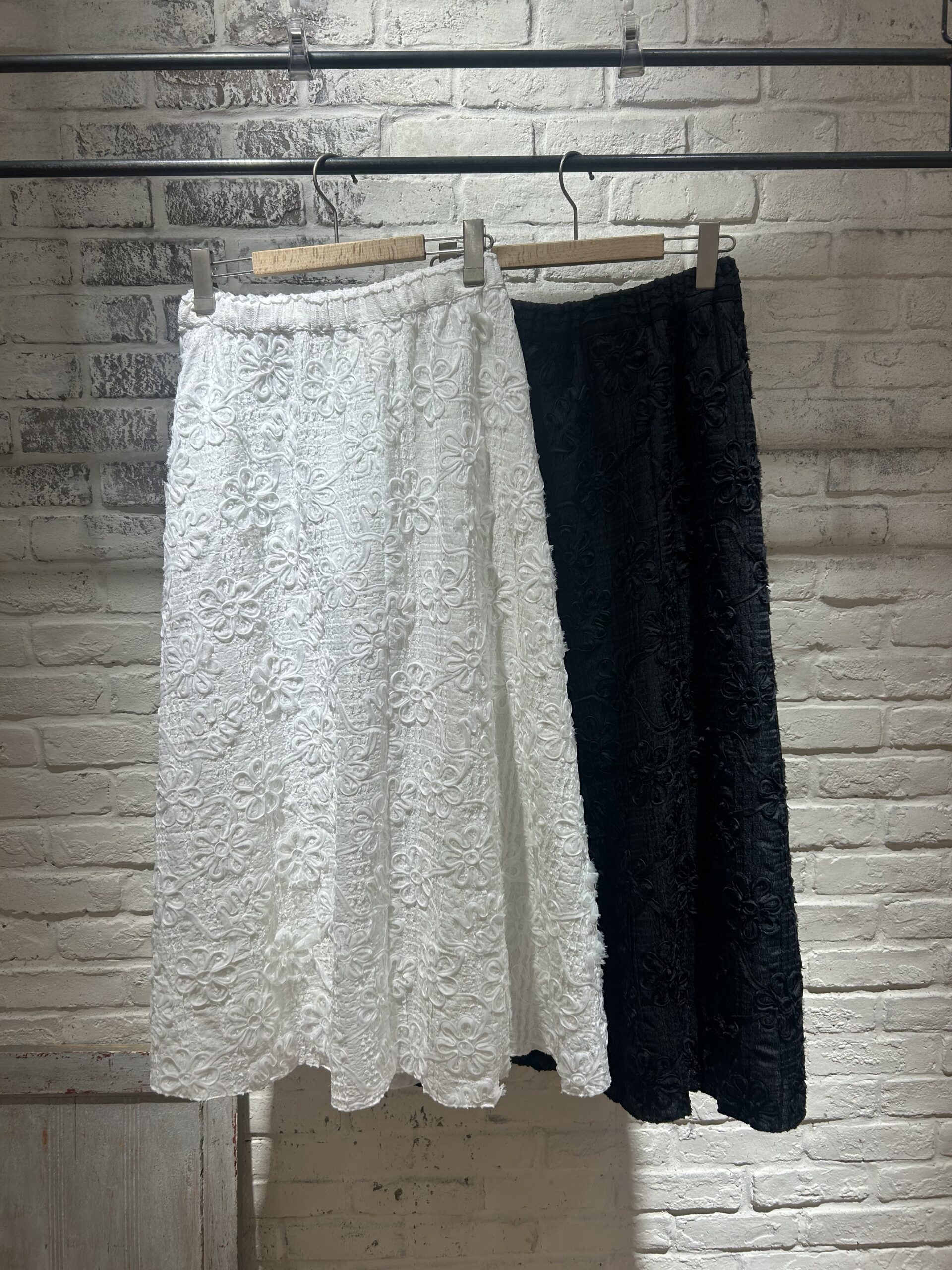 立体感のある花柄テープ刺繍が華やかなスカート。