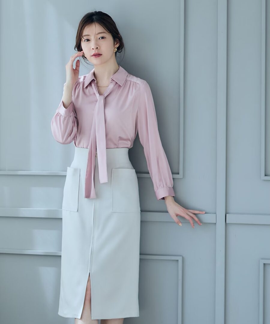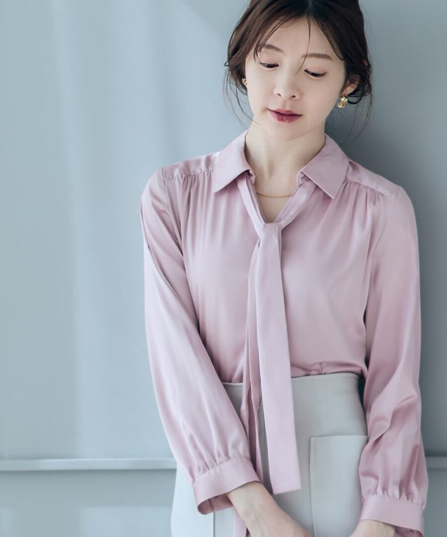 光沢感のあるサテン生地が上品で女性らしい雰囲気に♪