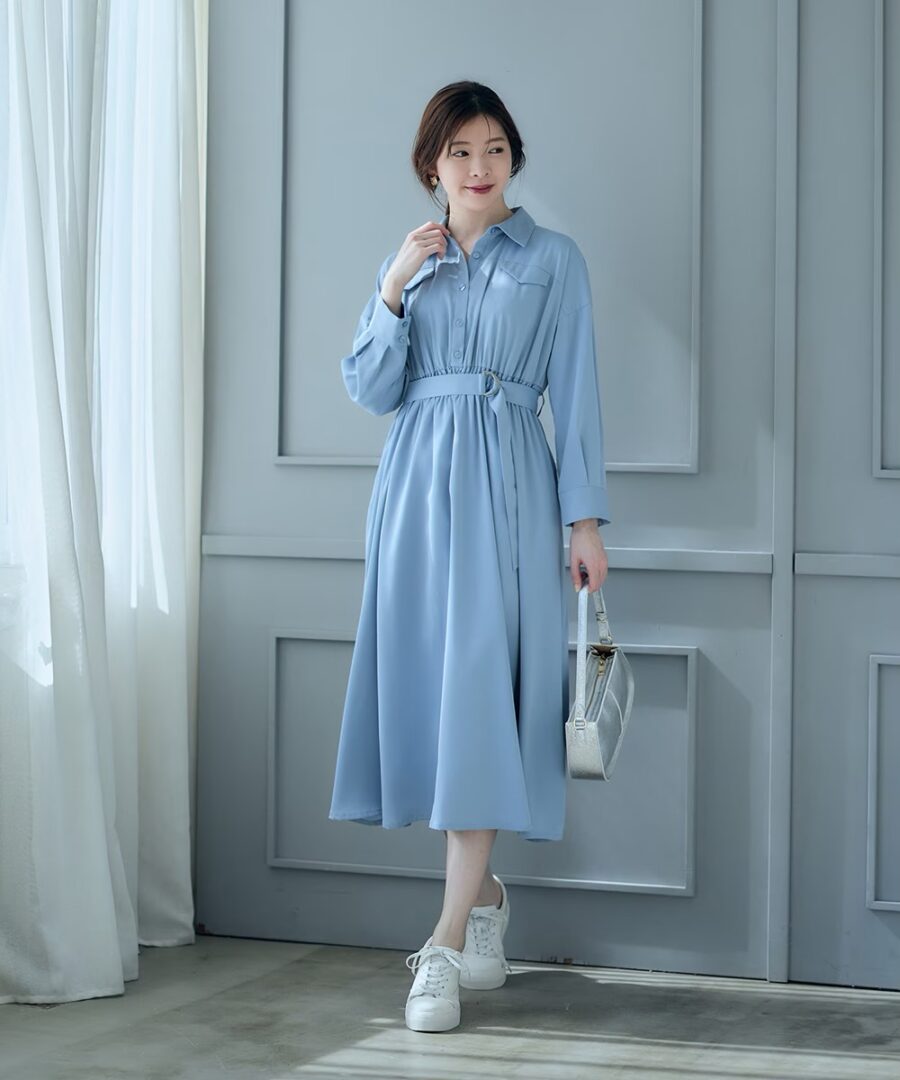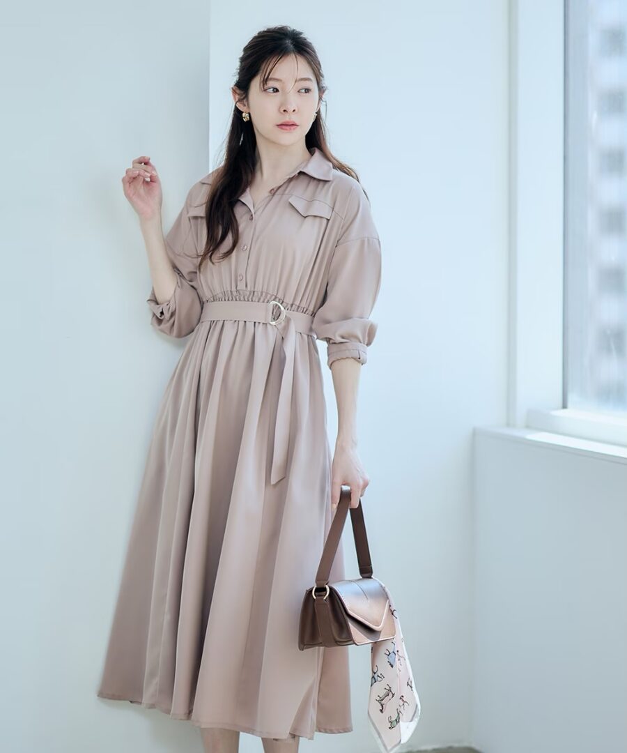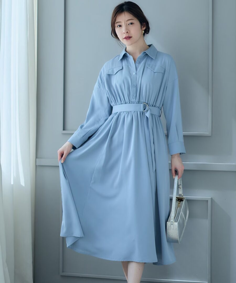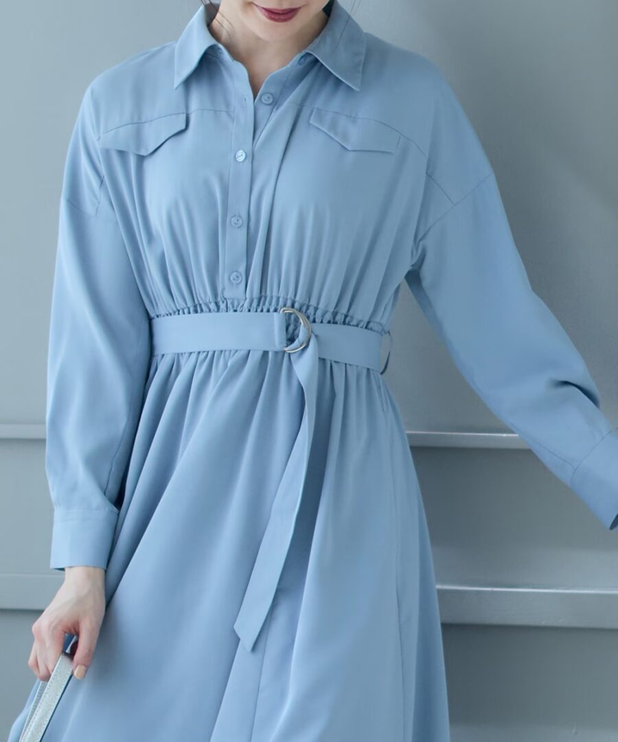 【フラップ付シャツフレアワンピース】