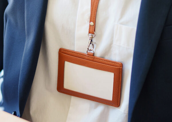 首からさっと下げられるストラップ付きなので、社員証や入館証をスマートに持ち歩くことができます。