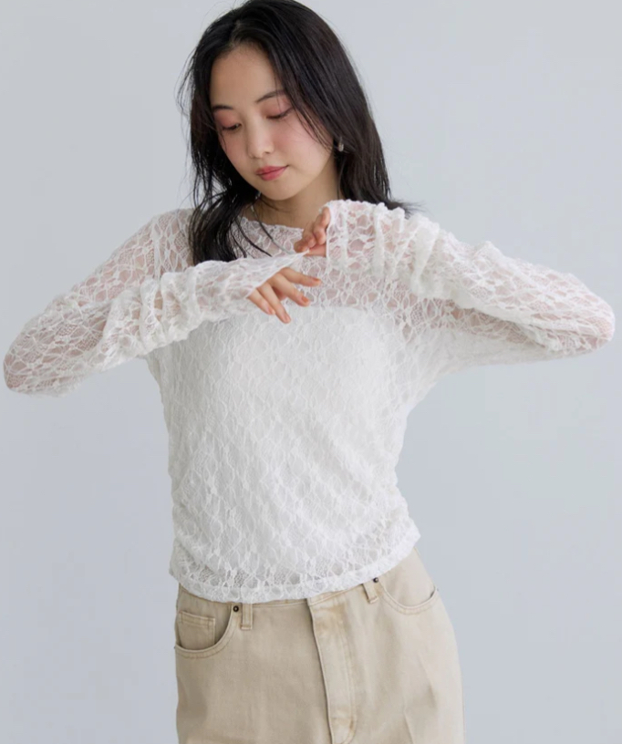 レースが流行りの今年インナーでキャミとサラっと合わせても