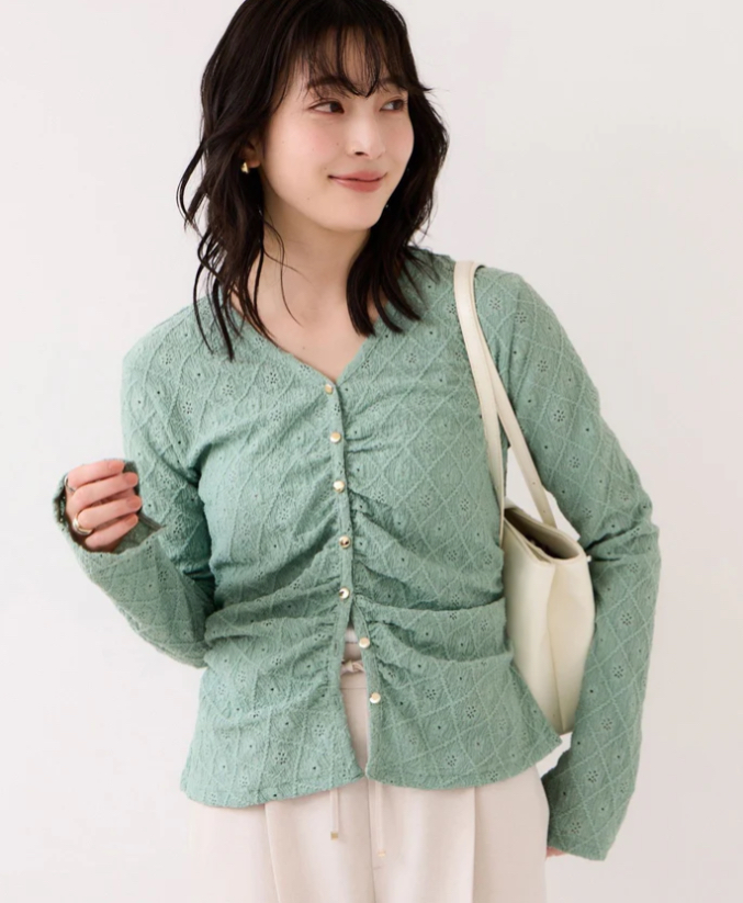 綺麗なライトグリーンカラーのカーディガン