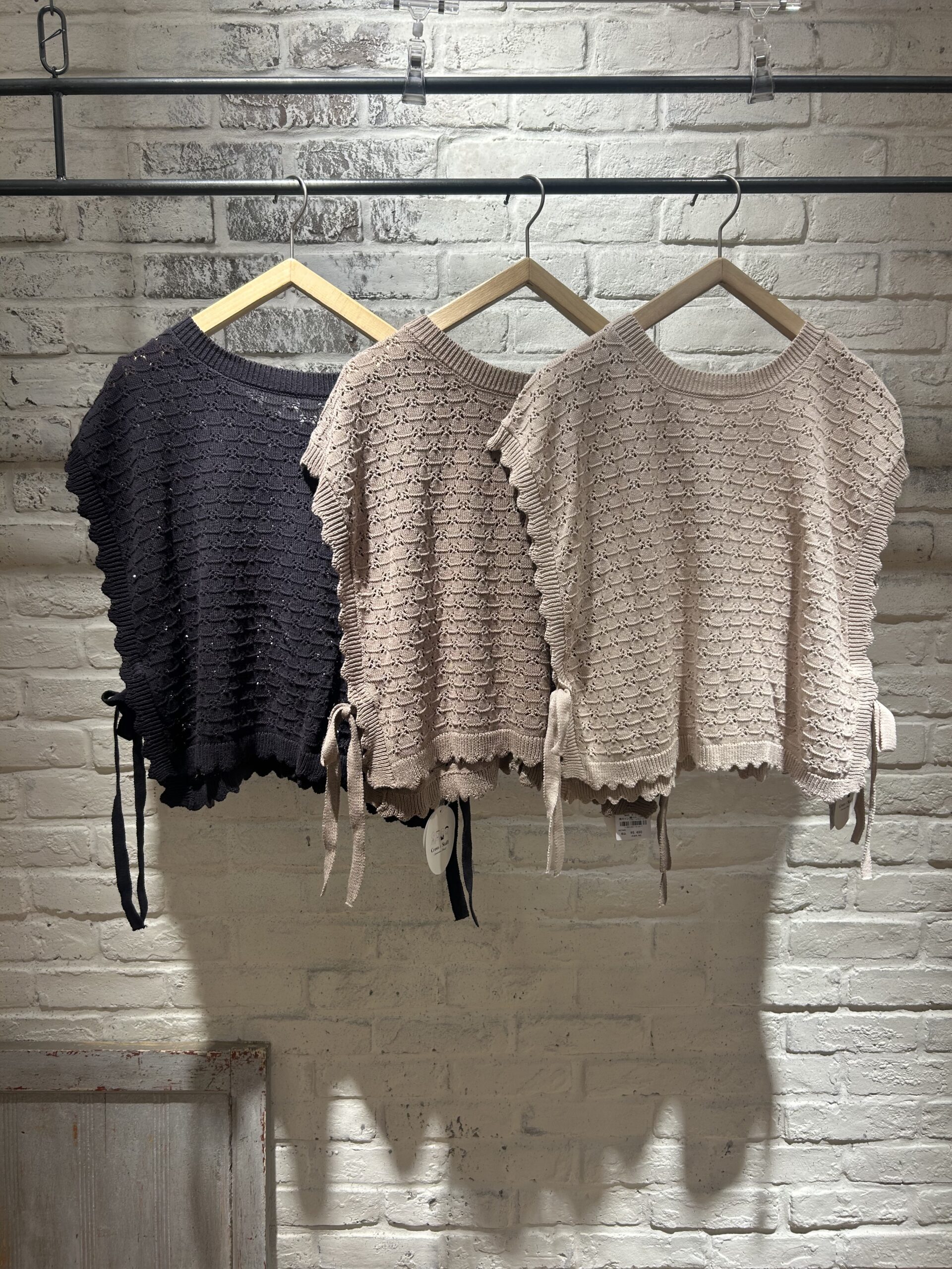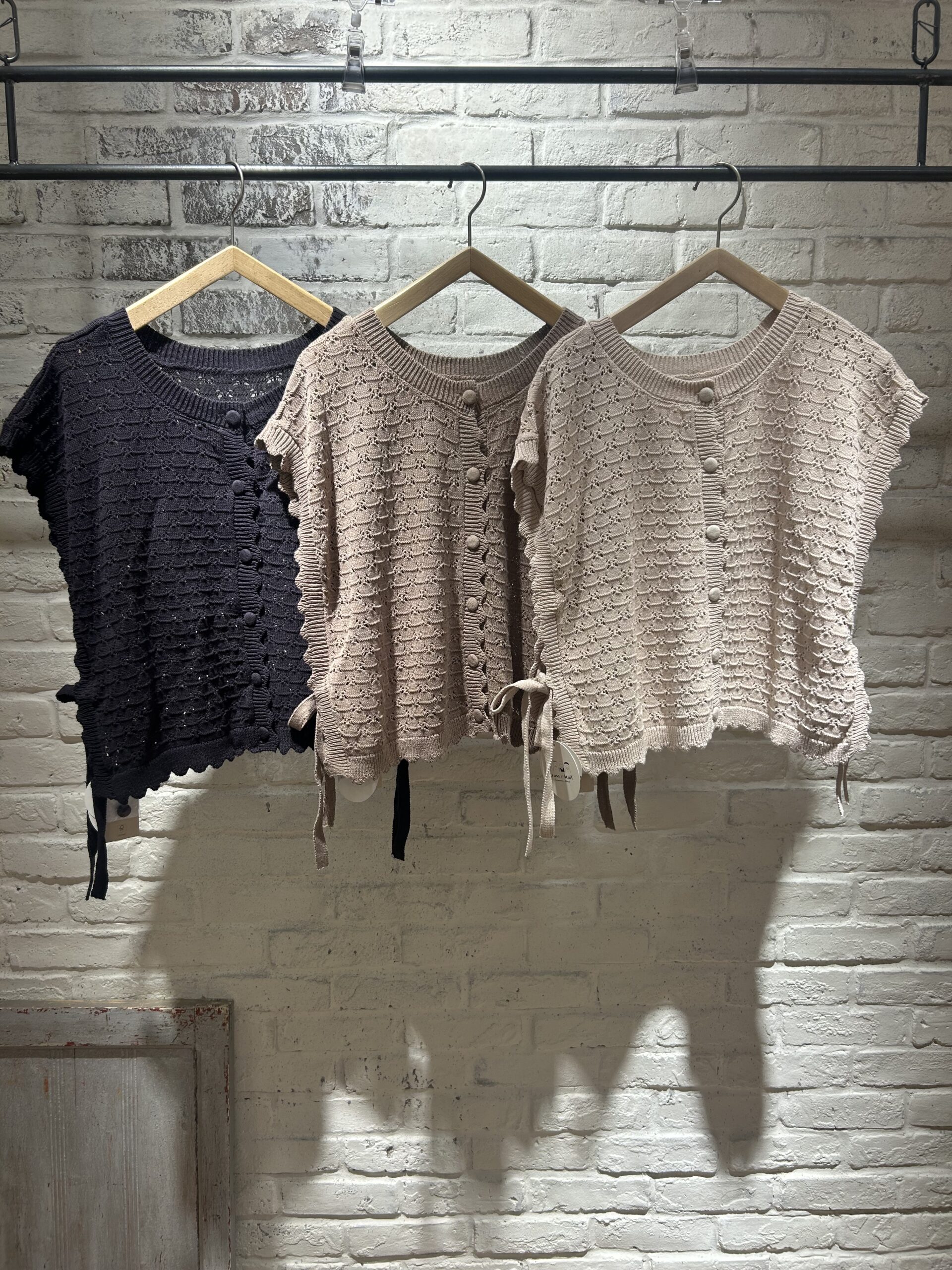 袖と裾に可愛らしいスカラップデザインとリボンがアクセントに。