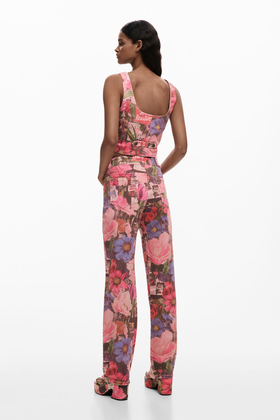 さまざまなパターンが入った、コットンとエラスタン素材のミドルウエストロングデニムパンツです♡