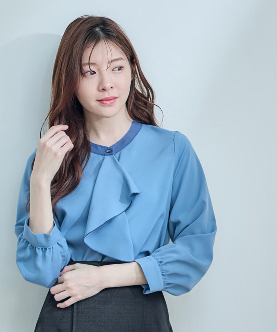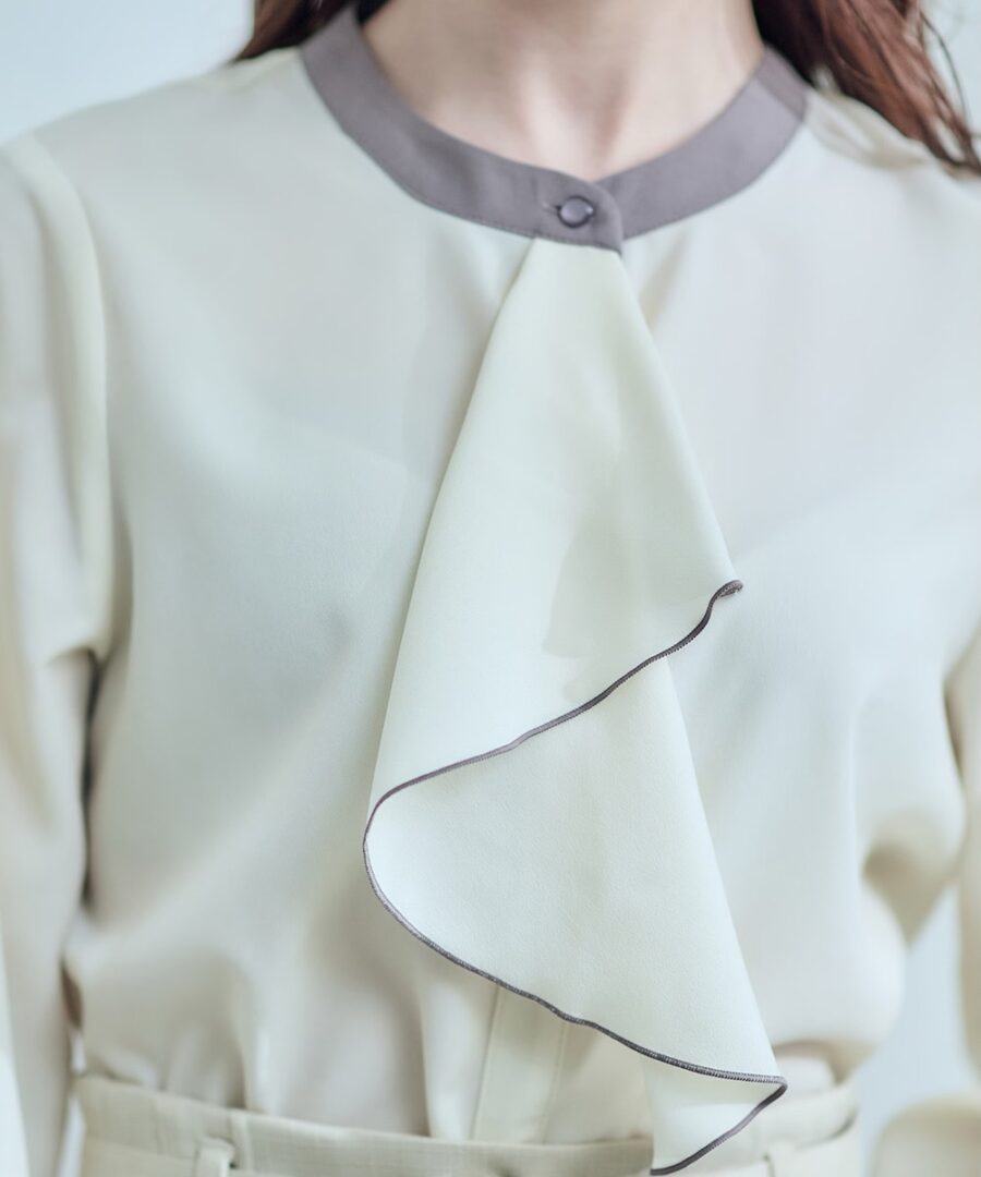 【配色フリルデザインシャツブラウス】