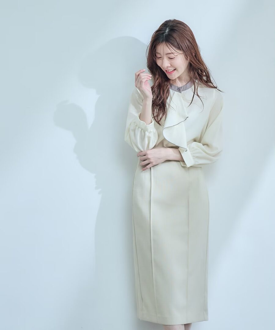 シンプルなスカートやパンツと合わせるだけで美しくまとまり
