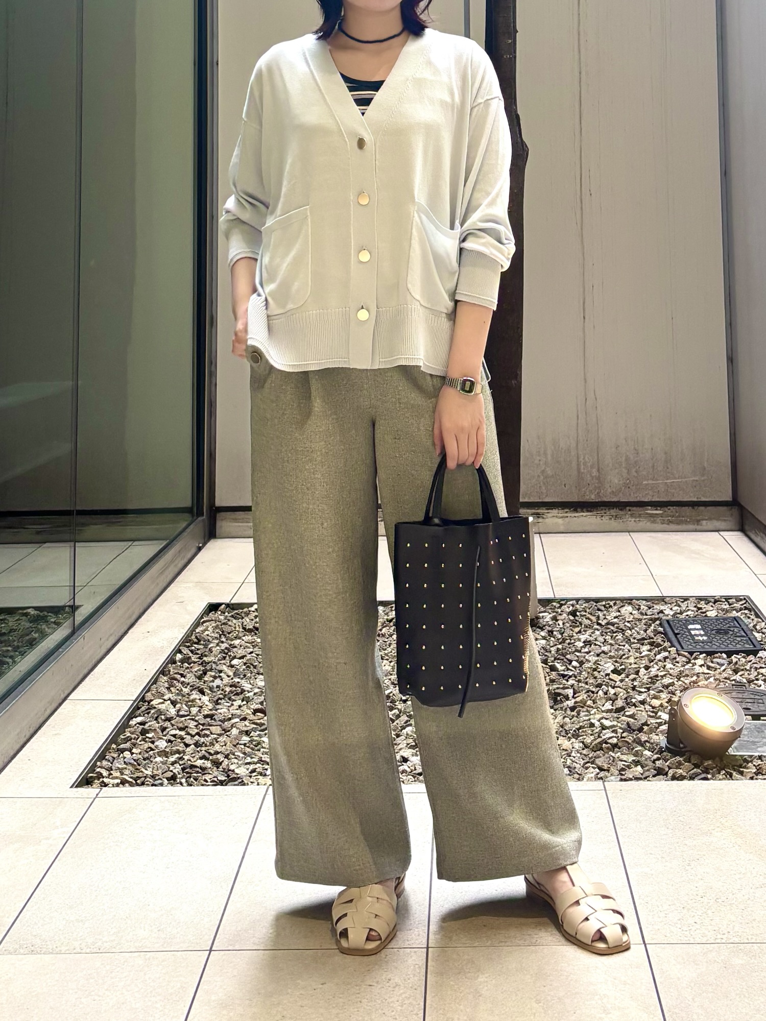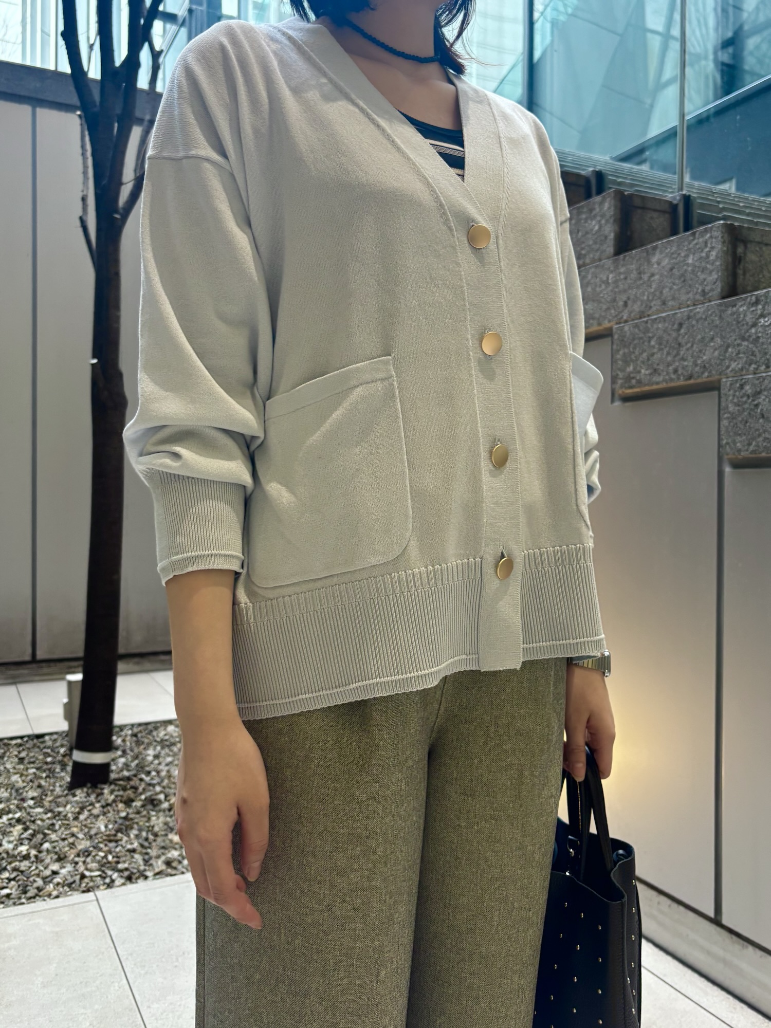 抜け感のあるゆるっとしたサイズ感で綺麗めなアイテムとも相性がよく、オフィスでもオフでもどちらでも合わせられます。