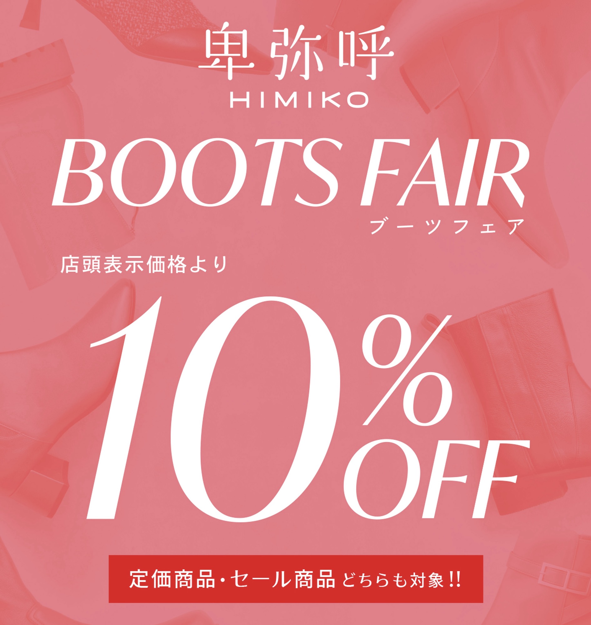 2026.1.16 UP 卑弥呼 レディスシューズ 2月1日(日)まで!『ブーツ全品10%OFF』 いつも卑弥呼ディアモール大阪店をご愛顧いただきありがとうございます😊❣️ ただいま卑弥呼では2月1日(日)までブーツフェア👢✨を開催中です‼️ ブーツ全品、店頭表示価格より10%OFFと大変お買い得となっております❣️ セール商品もさらにお買い得になるチャンスですのでお見逃しなく👀✨ 卑弥呼では21.5cm〜26.5cmまでのサイズをご用意しております⭐️ セール商品も多数ご用意しておりますので、ぜひ店頭でご確認ください♪ 皆様のご来店心よりお待ちしております😊❤️